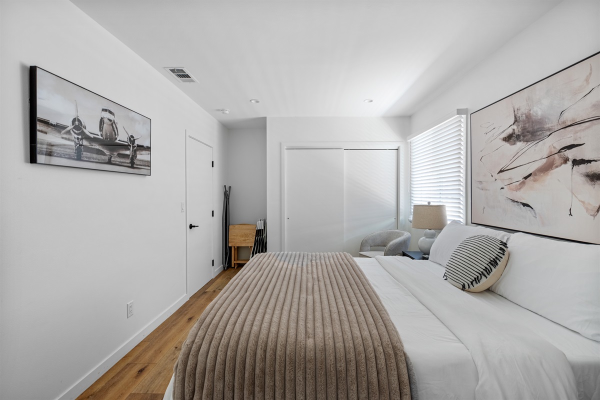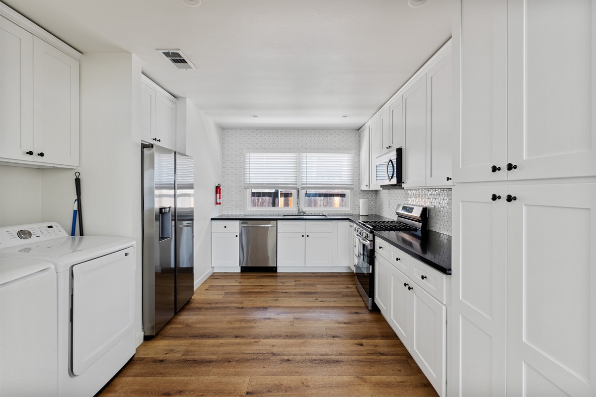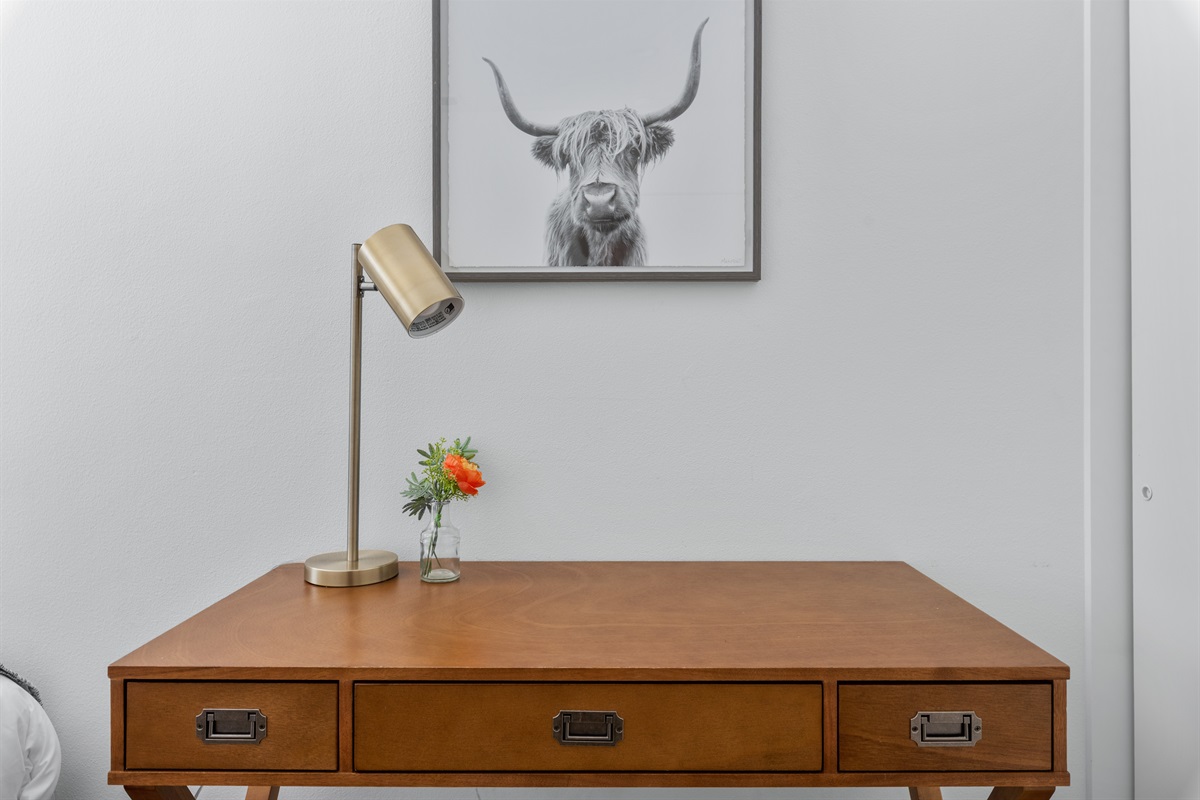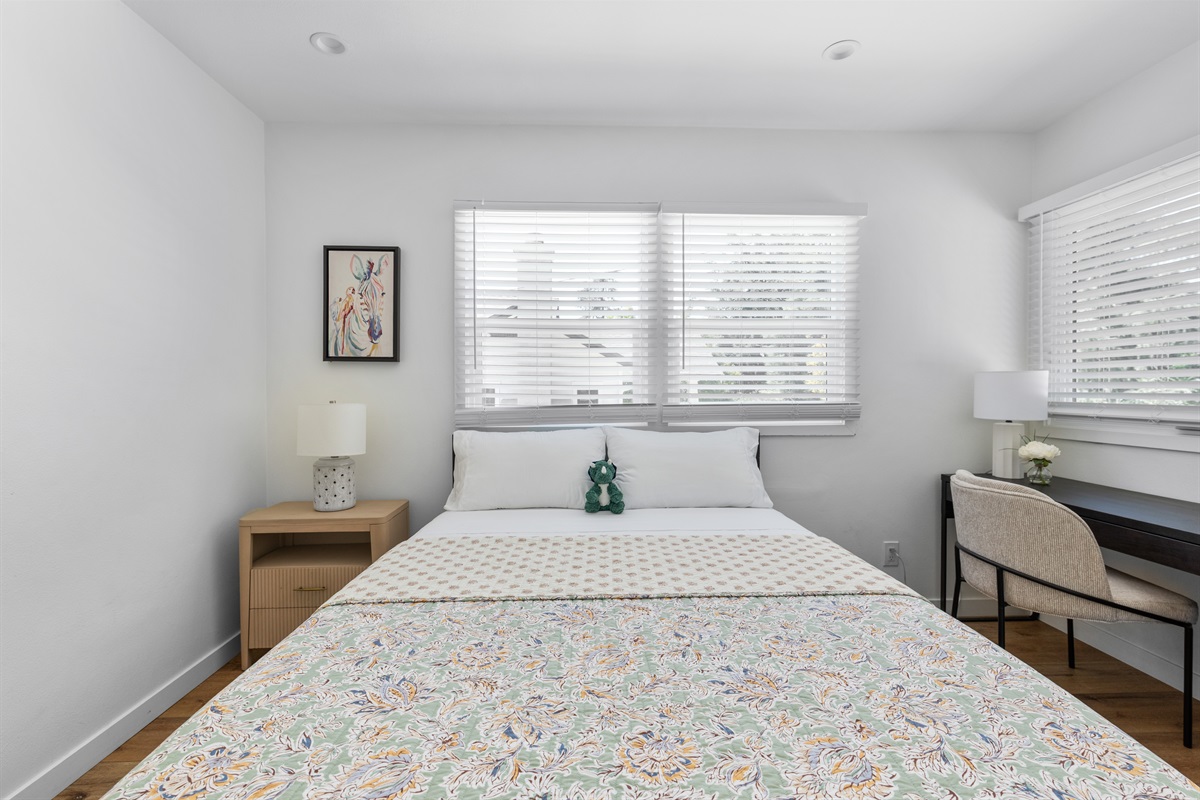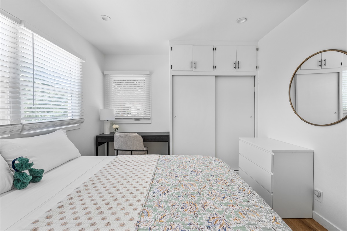 House features a great layout with a large kitchen, a comfortable primary bedroom suite, and multiple work desks.