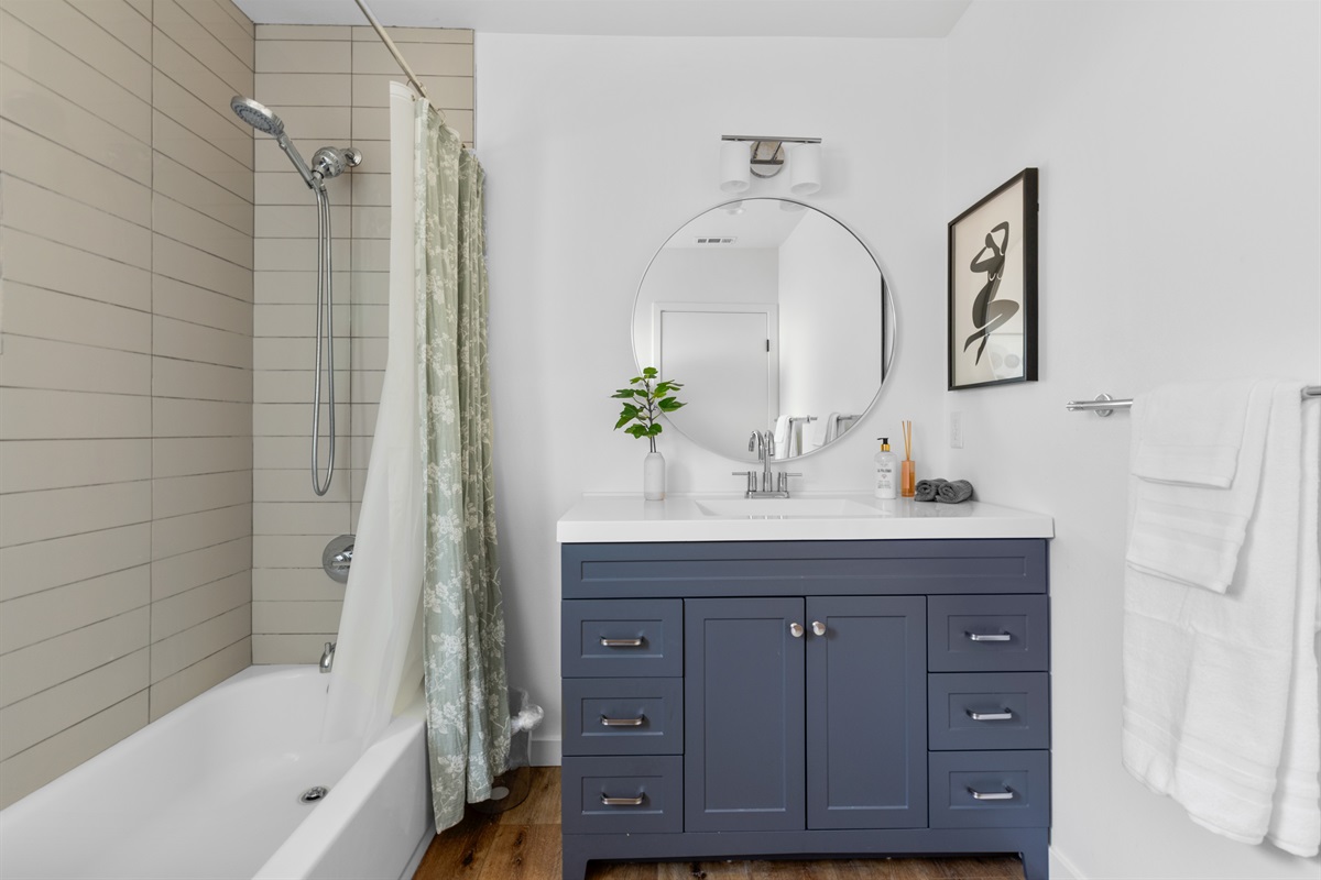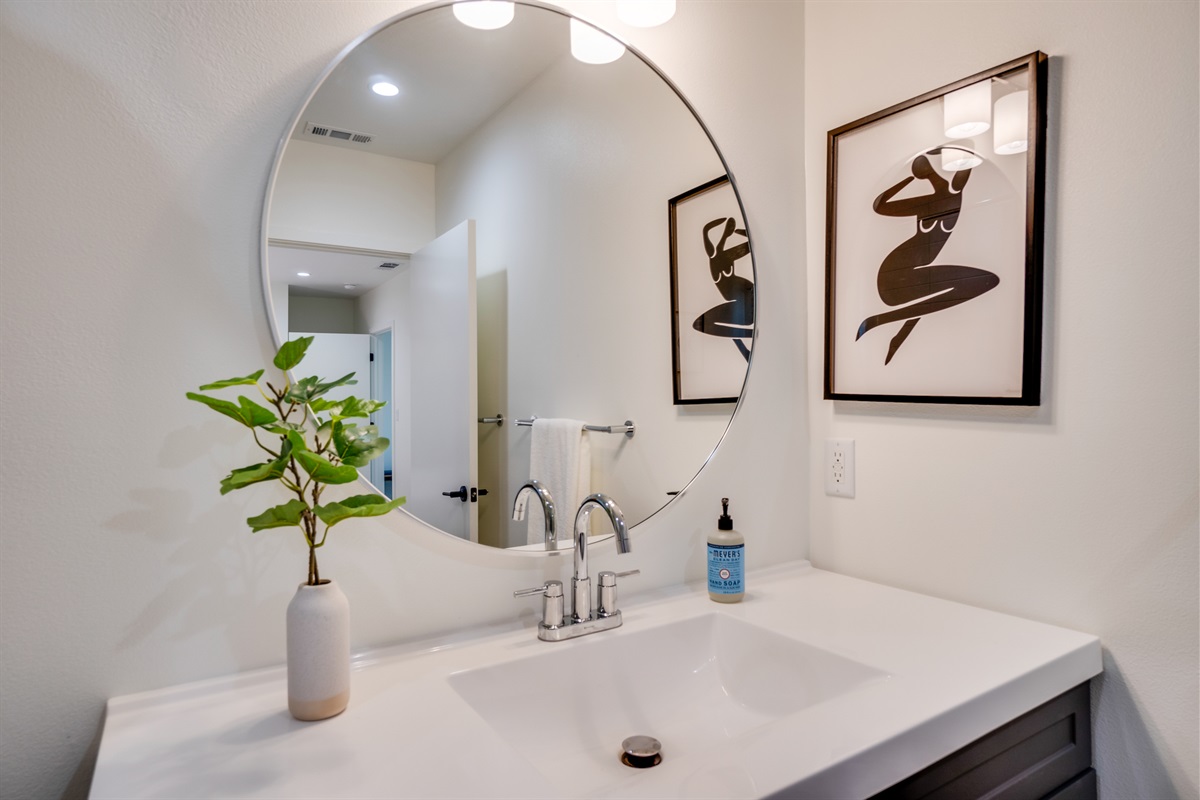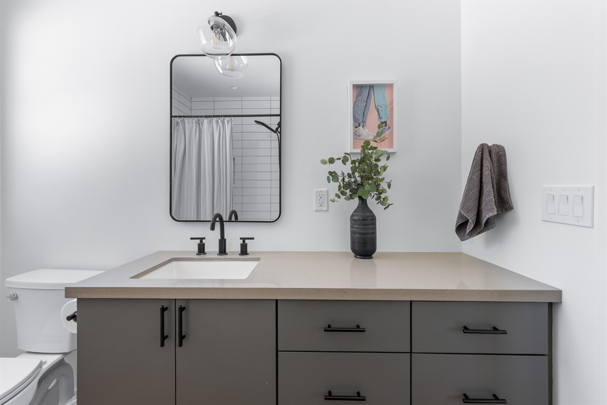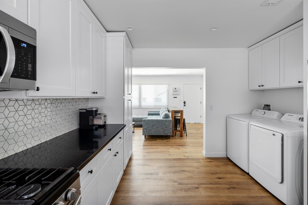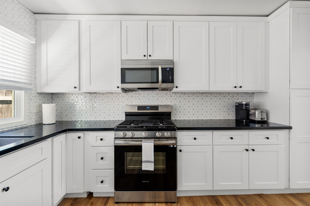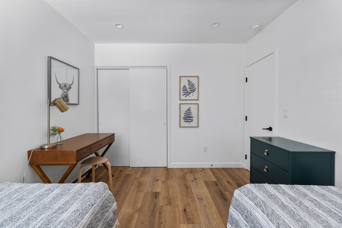 House features a great layout with a large kitchen, a comfortable primary bedroom suite, and multiple work desks.